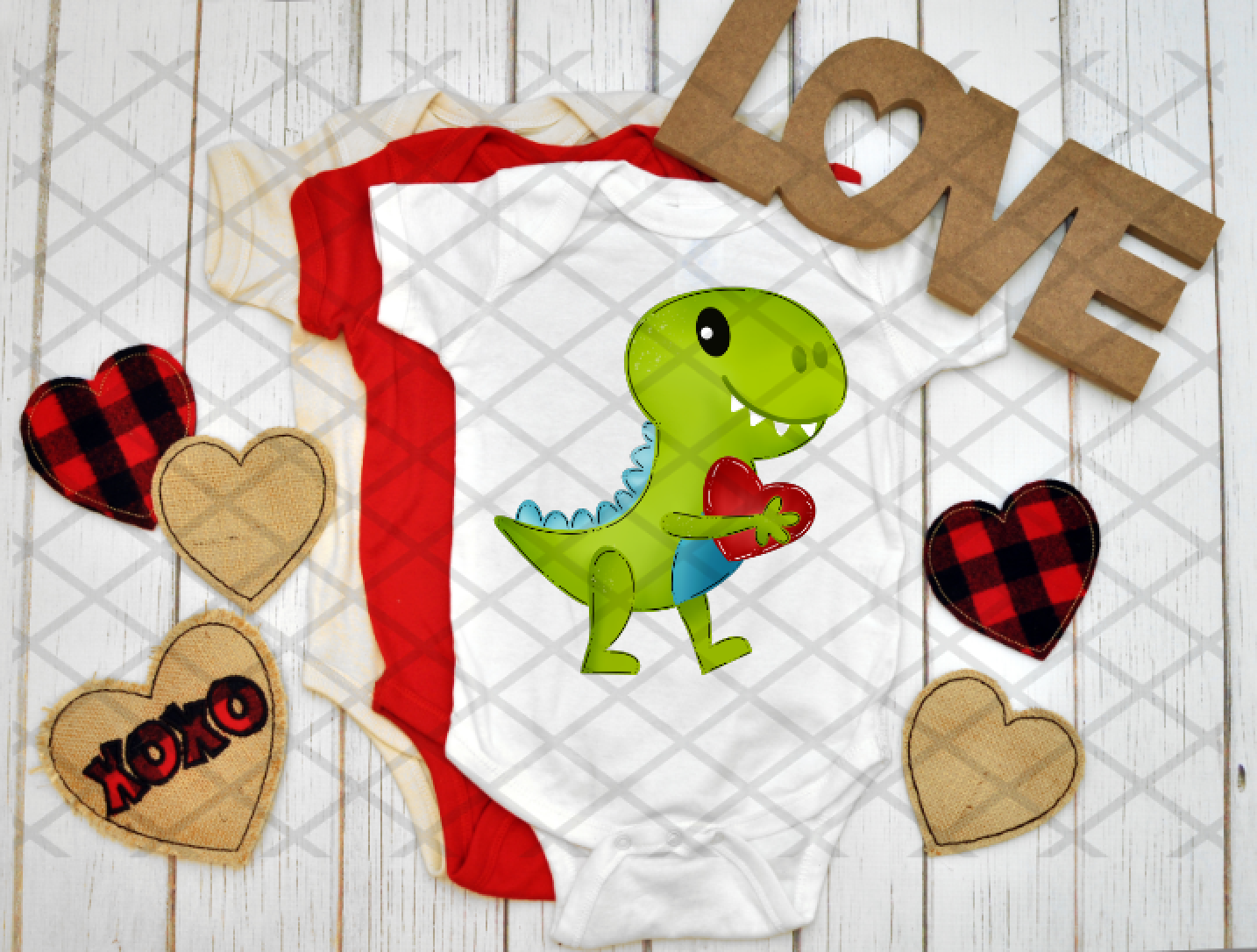 Dino with Hearts, Valentine's Day, Ready to press, Sublimation Transfer