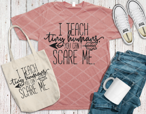 I teach tiny humans you can't scare me, Ready to Press, Screen print transfer