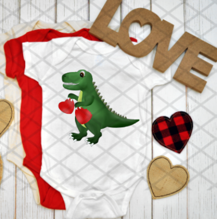 Dino with Hearts, Valentine's Day, Ready to press, Sublimation Transfer