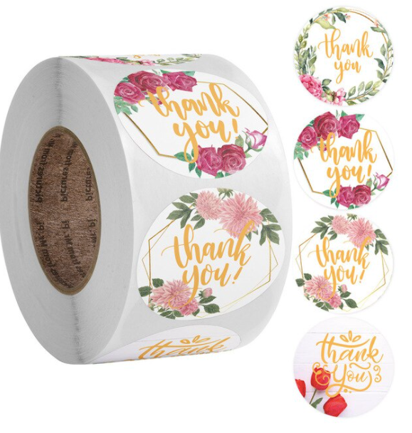 Floral Thank You Roll of 500 Stickers, Packaging Sticker