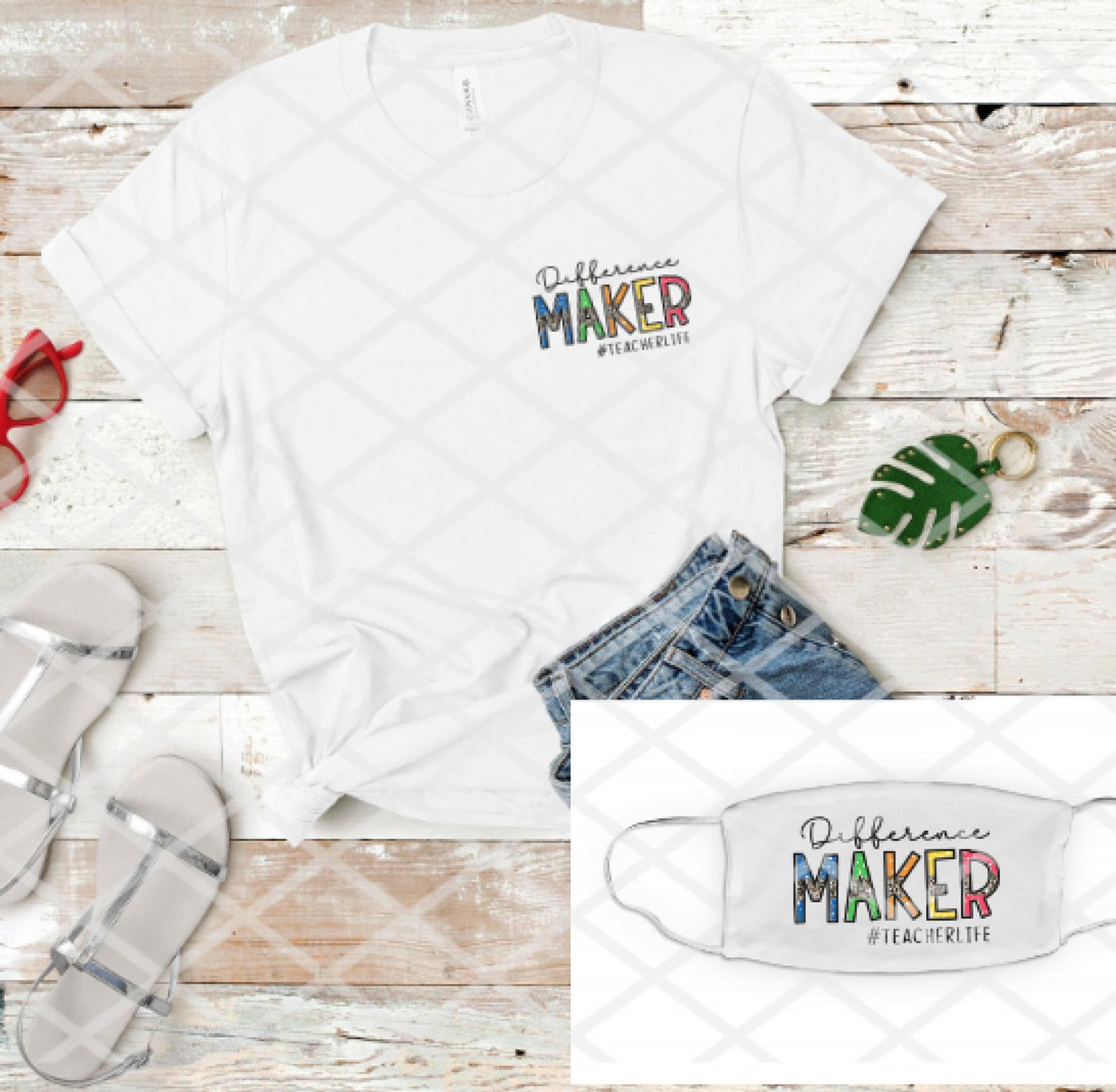 Difference Maker, Pocket, Hat, Mask Screen print transfer
