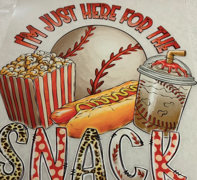 DTF Just here for the snacks, baseball, Ready to Press Transfer