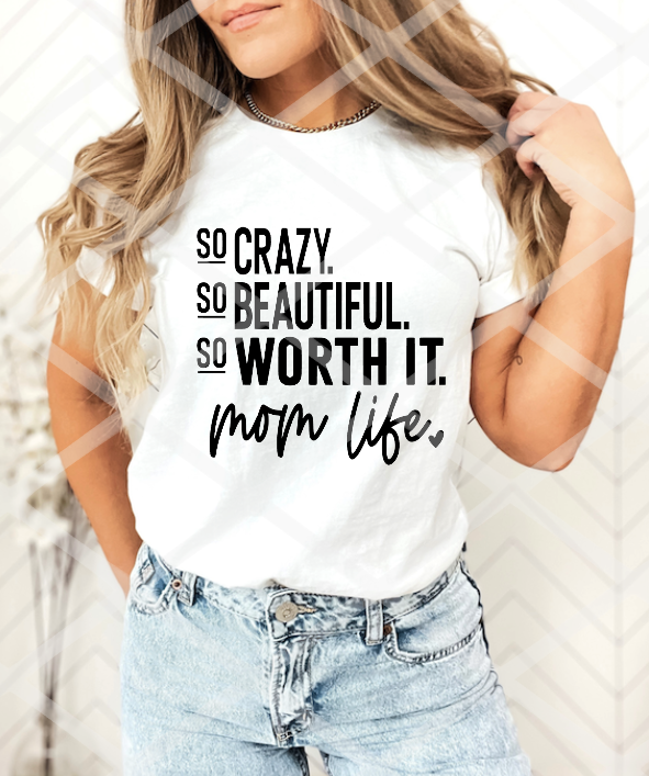 DTF So Crazy, So Beautiful, So Worth It, Mom life, Ready to Press Transfer