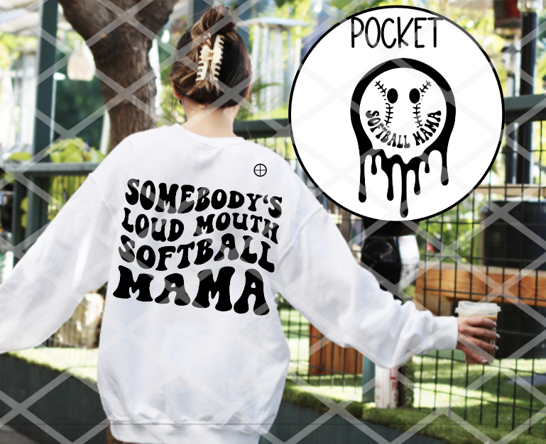 DTF Somebody's loud mouth softball mama with Pocket, Ready to Press Transfer