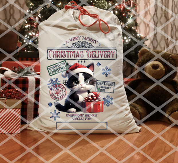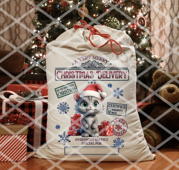 Puppies and Cats, Santa Sack Transfer, Ready to Press, Sublimation Transfer