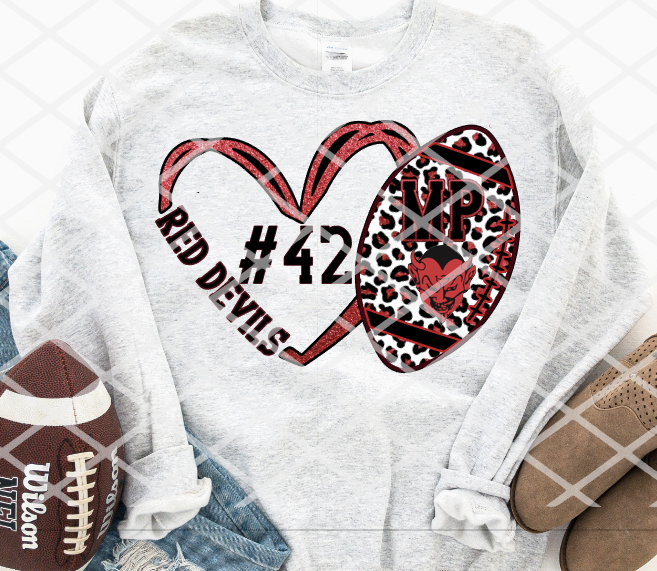 Red Devils Football Heart Sublimation or HTV Transfer